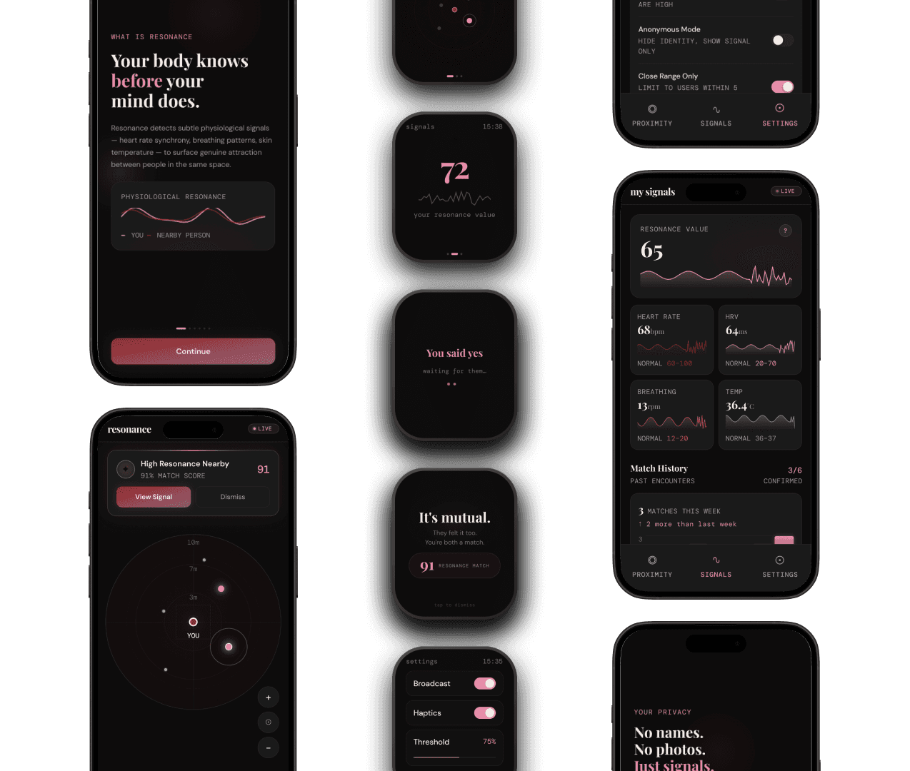 A reimagined speculative dating app built on embodied signals rather than swipes or photos.